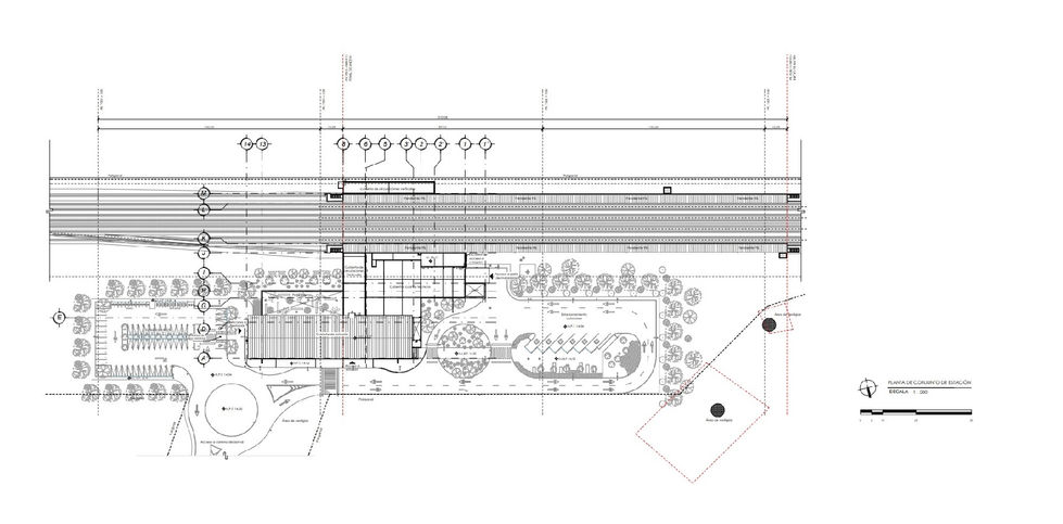 Se determina un área total de 5093.12 m2 de huella de la estación, en el cual se logra la distribución de los espacios requeridos para el correcto funcionamiento de la estación. La intención de diseño de la estación es sumergir el proyecto en el contexto histórico de la región, adaptando sus materiales, vegetación endémica, colorimetría y secciones naturales del terreno como parte de los ejes rectores del proyecto.